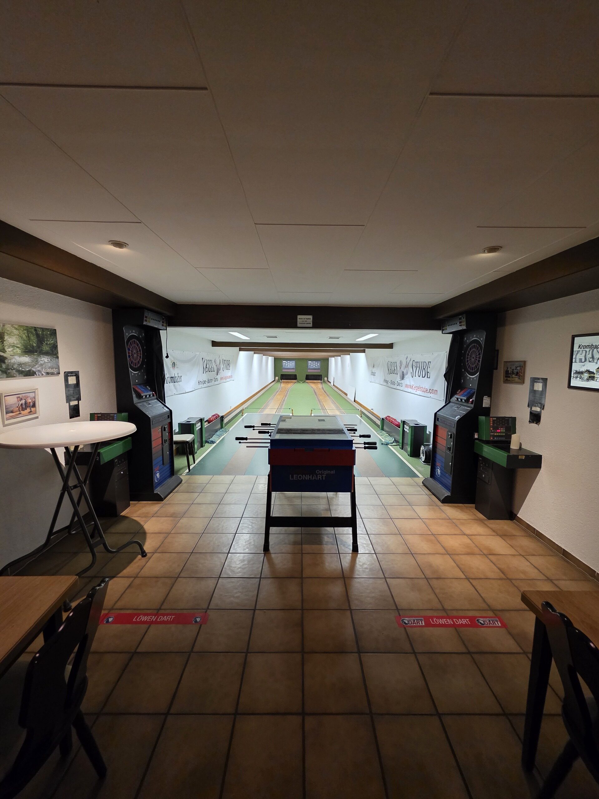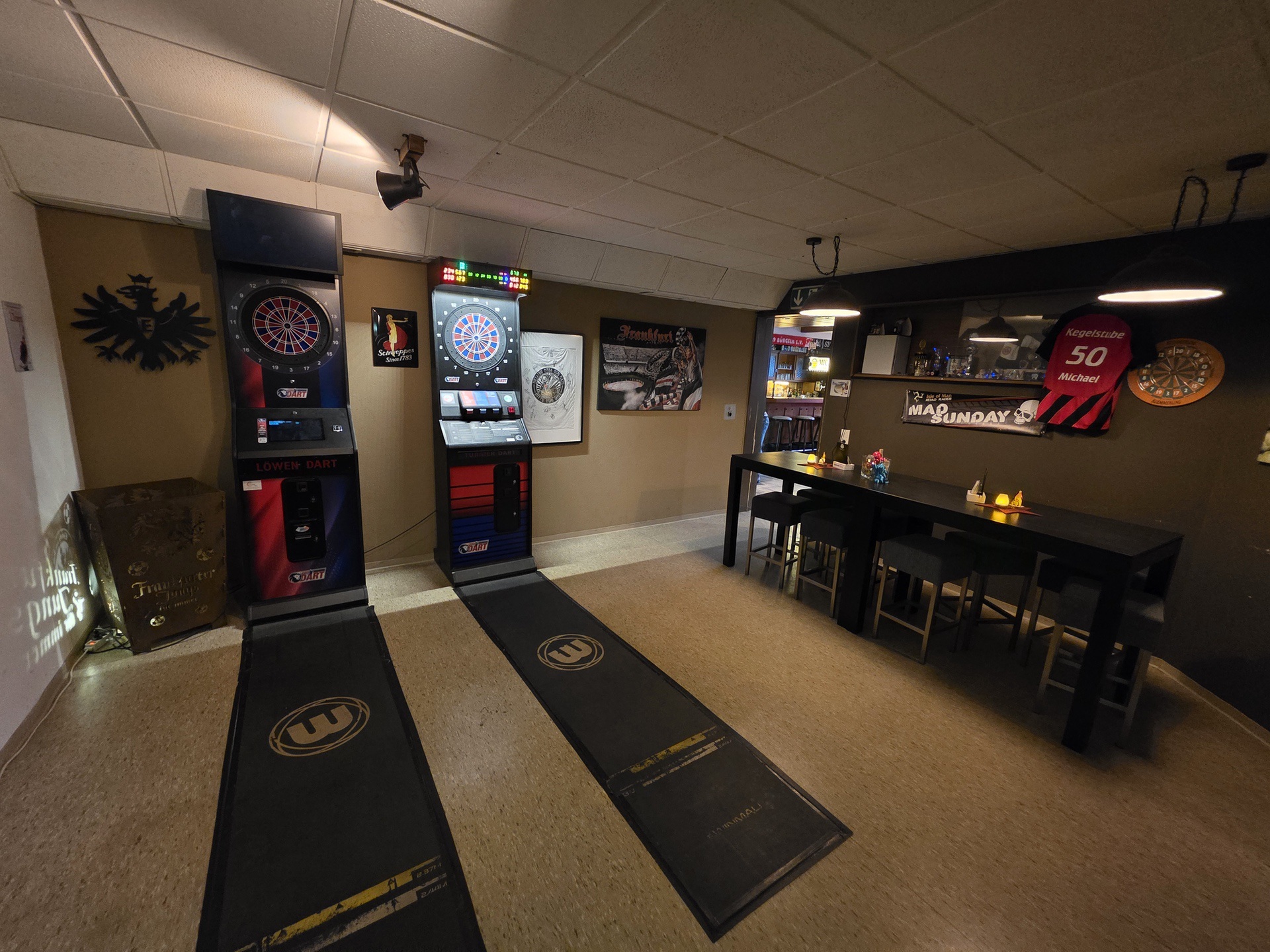 Bei mir in der Kegelstube wird nicht nur gekegelt, sondern auch jede Menge Darts gespielt. Auf 4 Dartautomaten können Profis und solche, die es werden möchten, gleichzeitig spielen. Es muss auch nicht gleich eine ganze Mannschaft sein, Darts ist gesellig, hat in unserer Kneipe viele Freunde und viele Vereine die regelmäßig trainieren und Turniere abhalten.